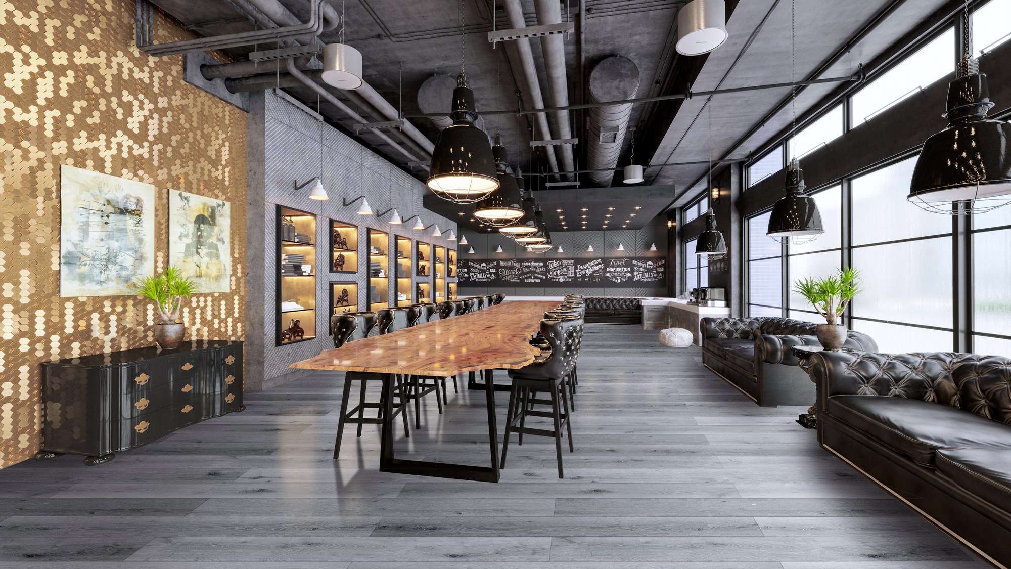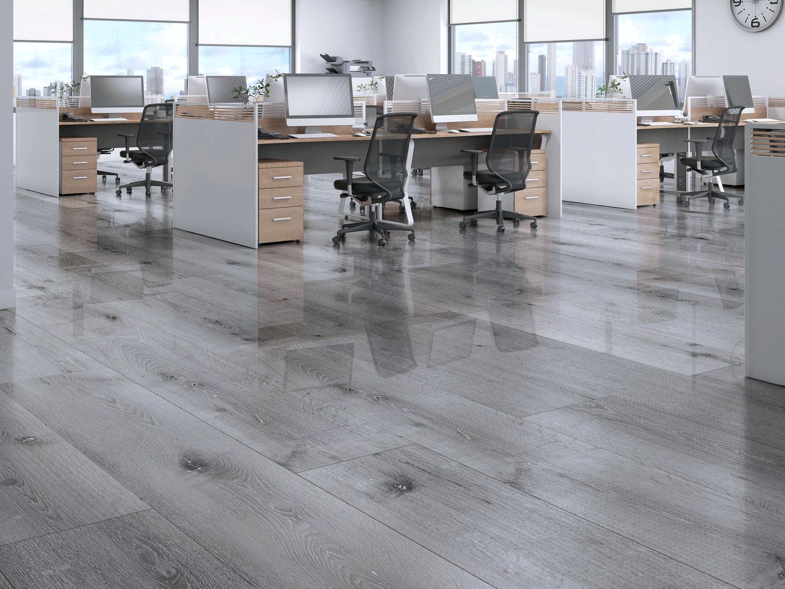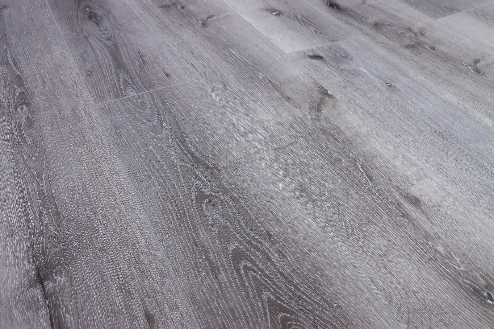 Кварцвинил Дуб Серый — часть коллекции WOOD. Это 4 мм SPC-ламинат с замковым соединением Click, защитным слоем 0,5 мм и классом износостойкости 43 / AC6. Упаковка 2,16 м².